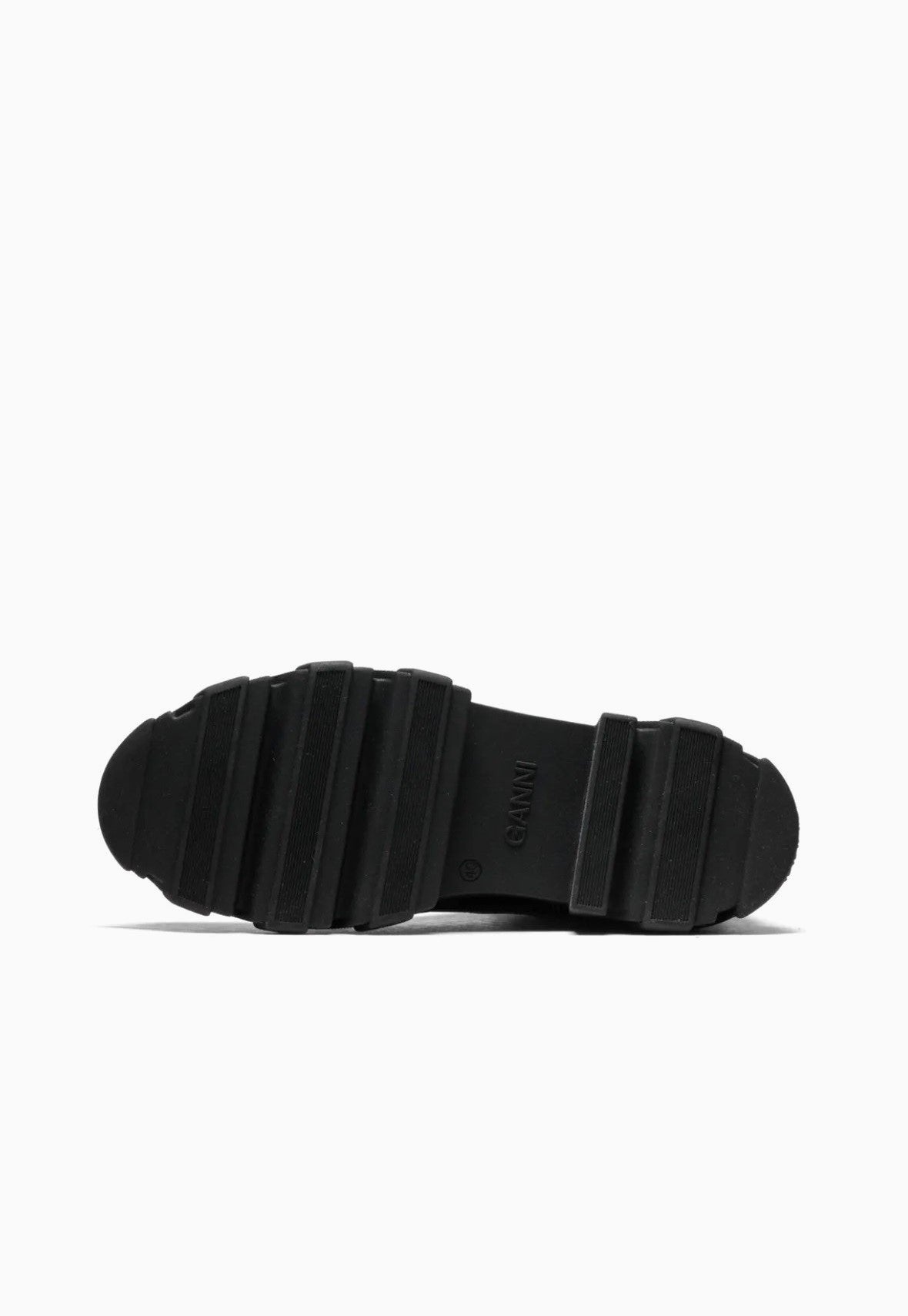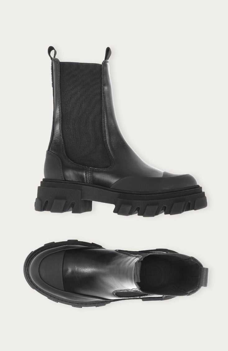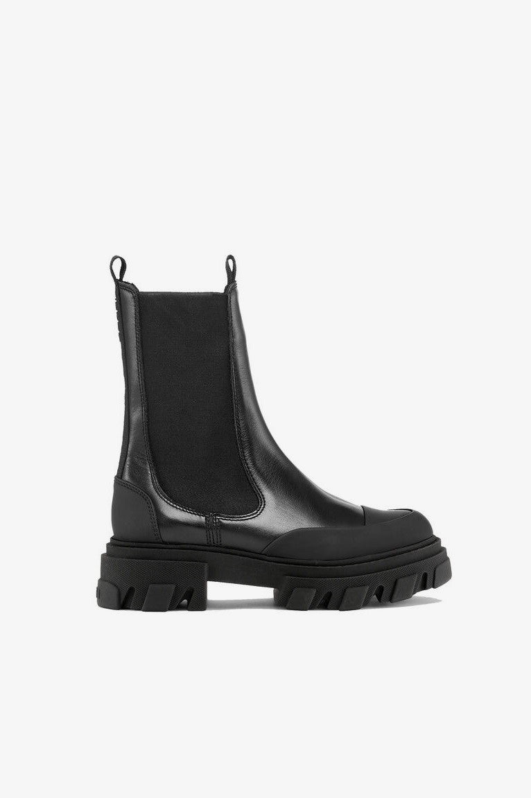 Round toe boot with pronounced welts, slip-on style, with logo pull-tabs