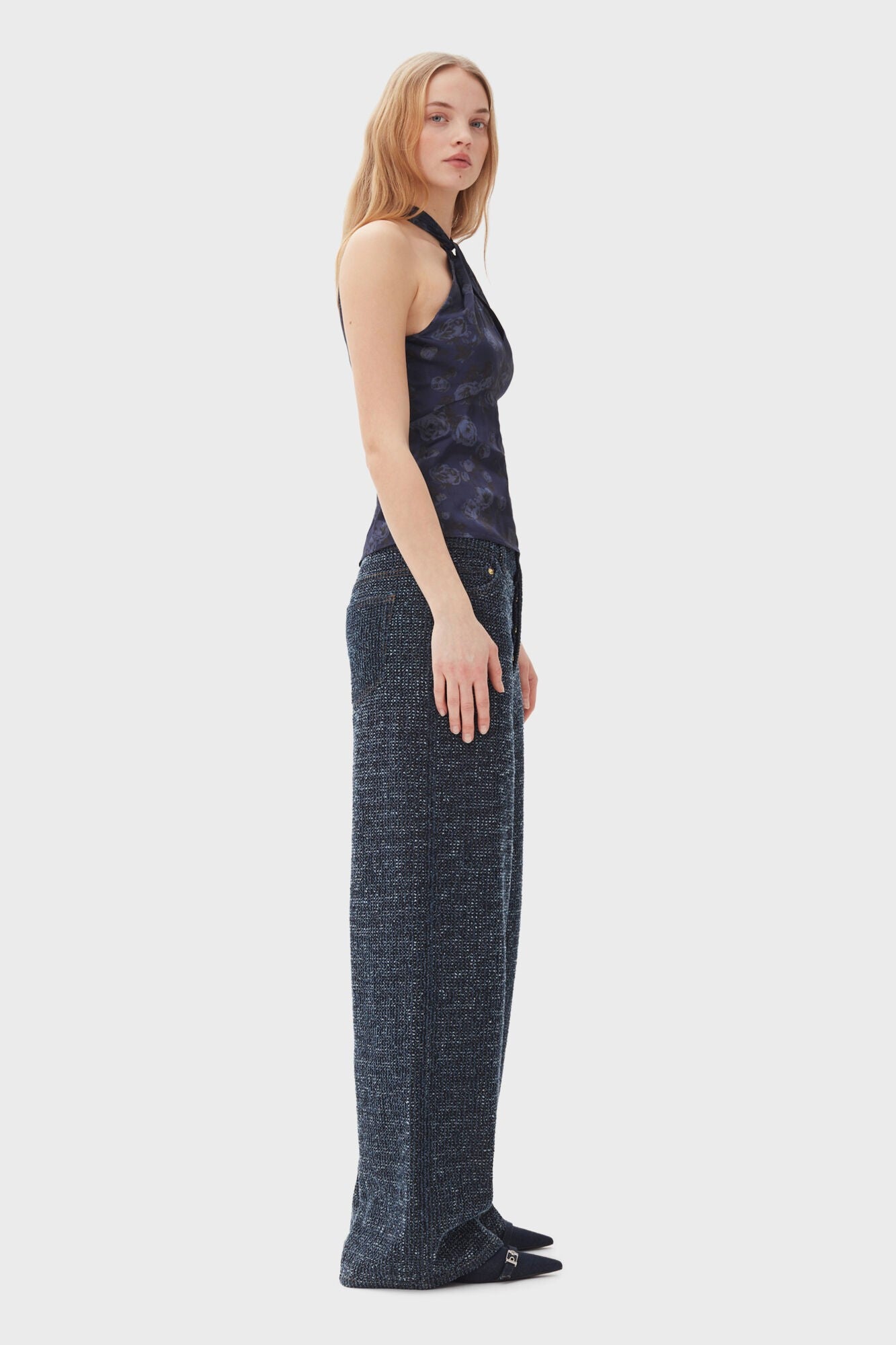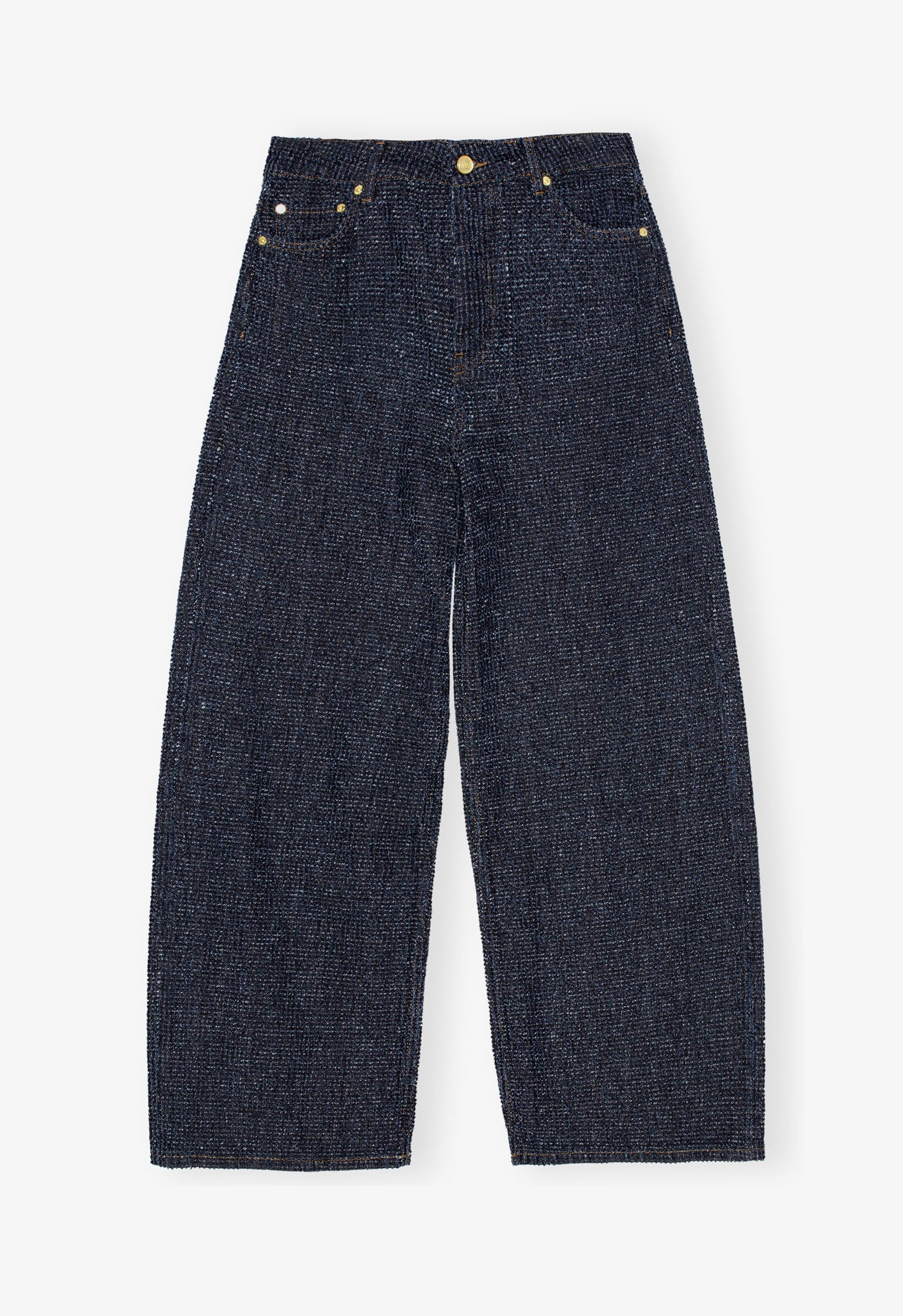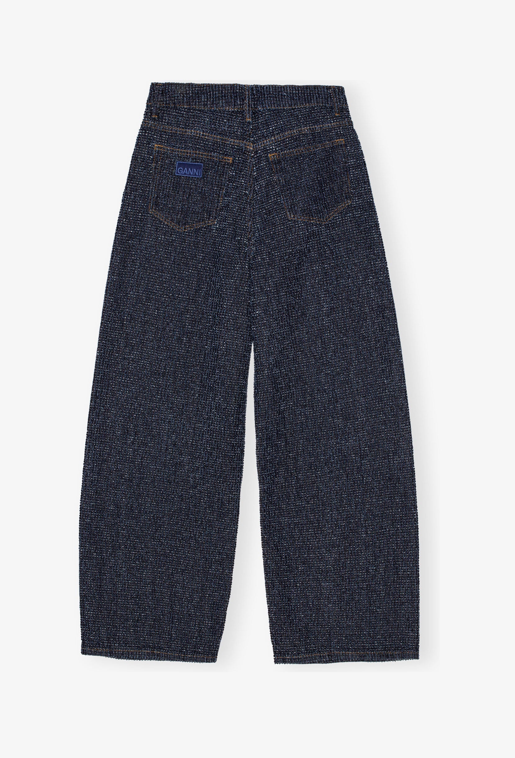 These Dark Blue Fluffy Wide Jeans feature 5 pockets with a zip and button closure and GANNI logo at the back pocket.