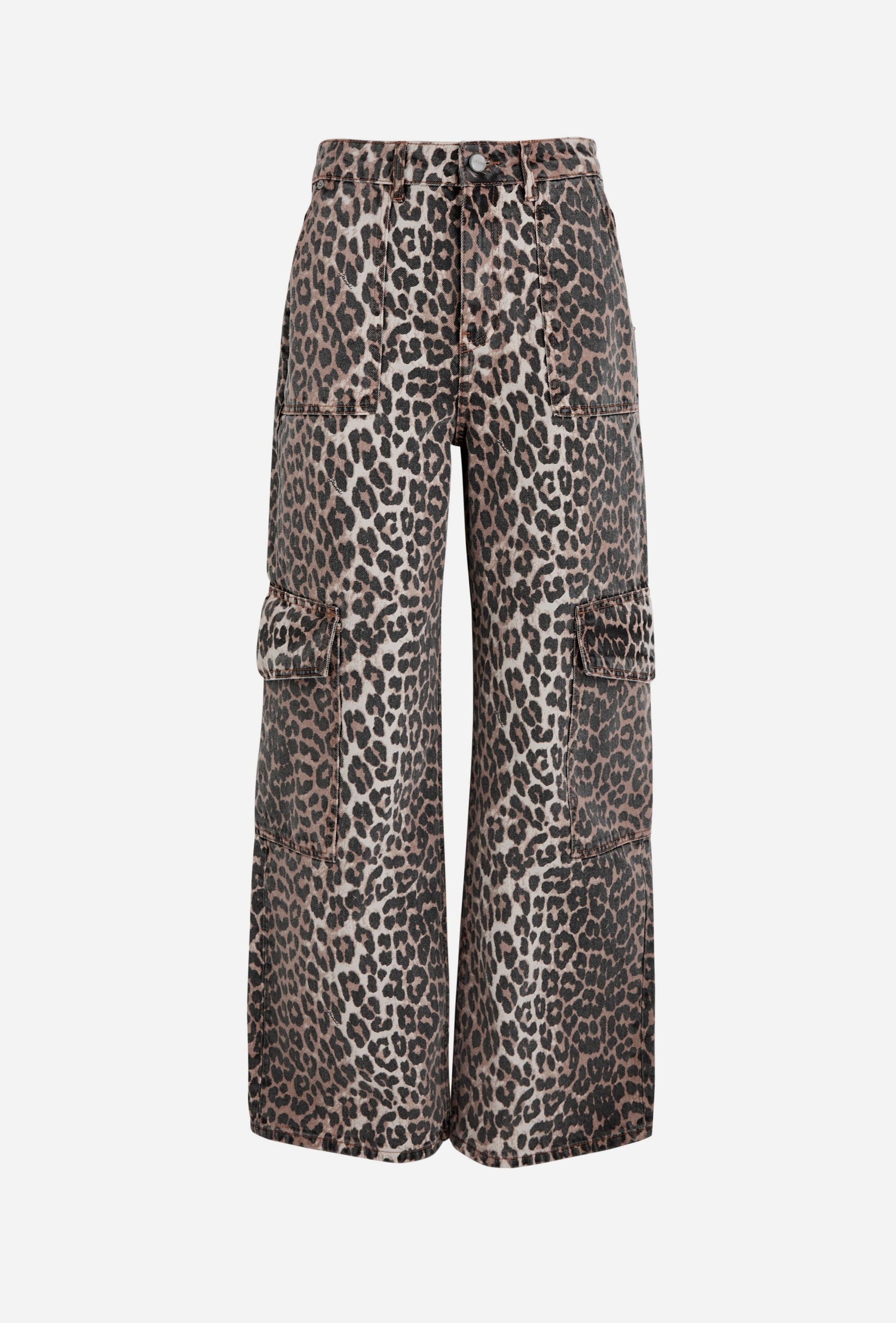 These Leopard Printed Angi Jeans Jeans feature a 5-pocket style with a zip and button closure, belt loops, cargo pockets on the lower leg and a GANNI logo at the back pocket