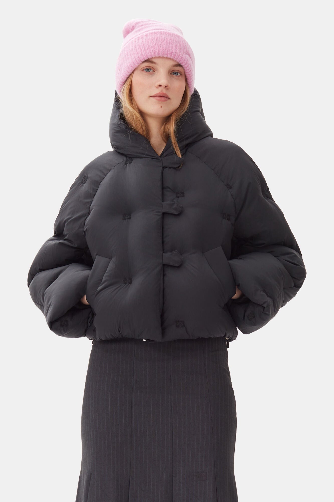 This Pink Soft Wool Beanie features a folded cuff with an embroidered GANNI logo.